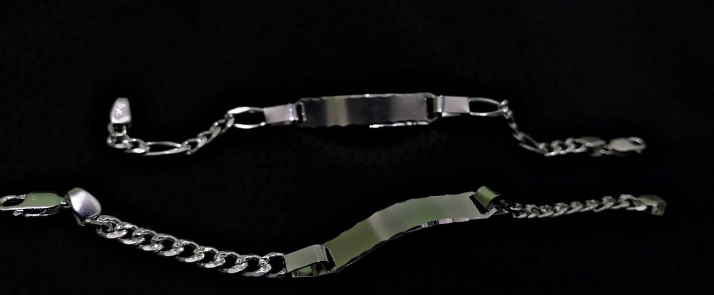 Grabado de nombres o fechas en laser o mano, medidas personalizadas, distintos tipos de acabado, define el grosor y el peso que deseas, en fin, todo lo que se te ocurra con la transformación de la plata, la realizamos por usted.